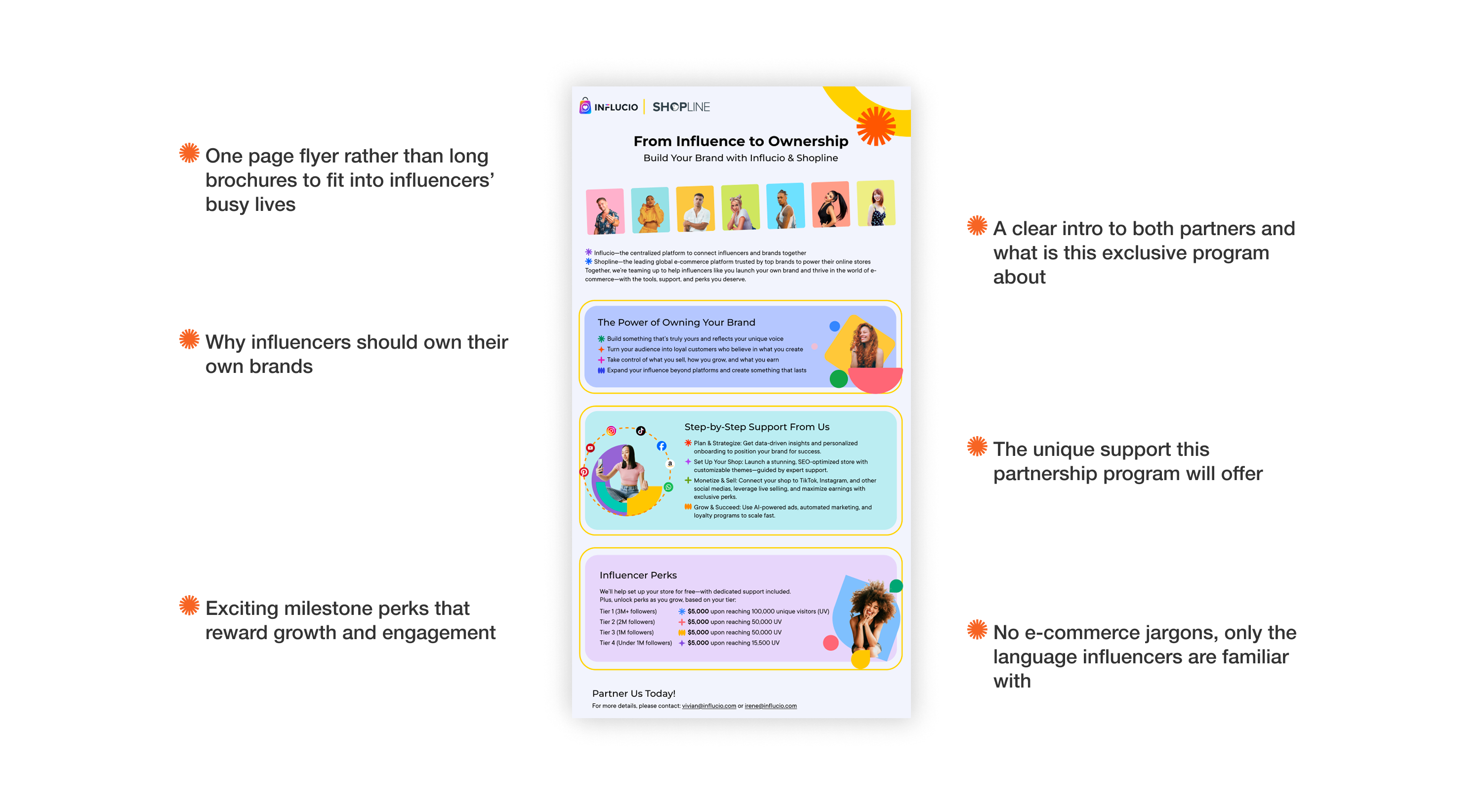 Shopline's platform gave influencers the infrastructure to build their own e-commerce storefronts. Influcio's role was to recruit influencers into the program and get them excited about building something of their own. On paper, a strong offer.