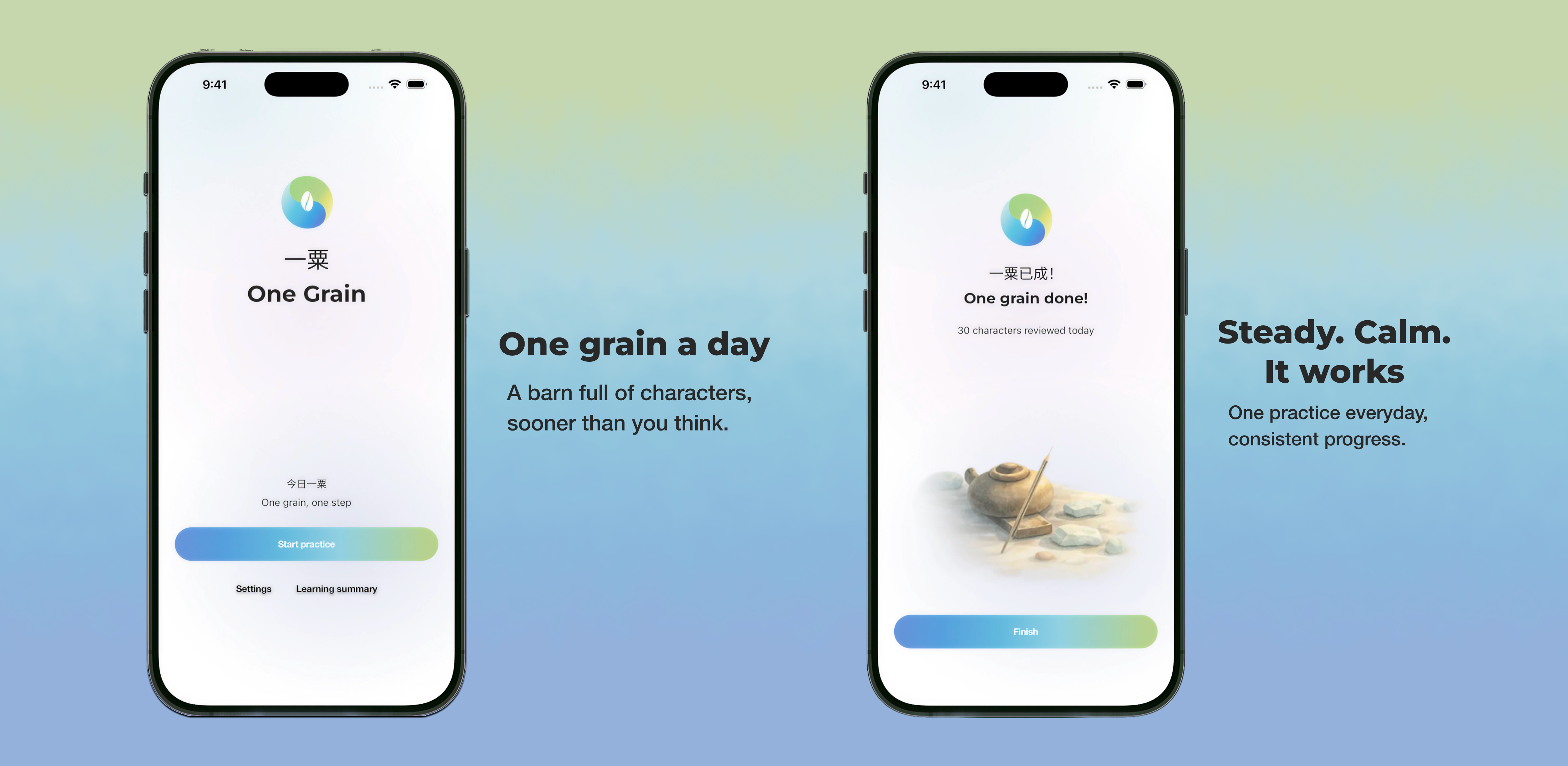 Chinese culture deeply values the wisdom of "accumulating little by little." The name One Grain (一粟) carries that spirit. Just as grains accumulate one by one to fill a granary, characters learned daily build the foundation for real reading ability.